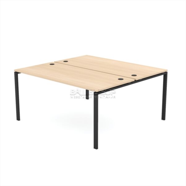 Двухместный бенч-стол АМБ-004 — это надёжная модель на металлическом каркасе из серии «Арго-М», разработанная для рациональной организации рабочих мест в офисе. Конструкция опирается на П-образные опоры с профилем 50×25 мм и усиливается траверсами сечением 40×20 мм, обеспечивая стабильность и прочность. Рабочие поверхности немного приподняты над металлокаркасом, создавая ощущение лёгкости и визуального простора. Габариты стола составляют 1600 мм в ширину, 1496 мм в глубину и 760 мм в высоту. Между столешницами предусмотрен зазор 36 мм, специально рассчитанный для установки фронтальных экранов. Конструкция совместима с тумбами АТ-07 с крышками, а также с моделями тумб-купе, что позволяет гибко формировать индивидуальное рабочее место.