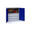 Конструкция оснащена ригельной системой запирания и замком с высокой степенью защиты, что гарантирует надежность хранения. Металлический корпус покрыт полимерной порошковой краской, защищающей от коррозии и механических повреждений. Базовое цветовое оформление – светло-серый корпус (RAL 7035) и синие двери (RAL 5002), при необходимости возможна окраска в другие оттенки по каталогу RAL.