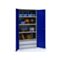 Каркас изготовлен из высокопрочного металла и покрыт полимерной порошковой краской, которая предотвращает появление коррозии и защищает поверхность от механических повреждений. Для безопасного хранения содержимого предусмотрен ригельный механизм запирания и замок с повышенной степенью защиты. В базовом исполнении шкаф окрашен в светло-серый цвет (RAL 7035), а дверцы – в синий (RAL 5002). По запросу доступна окраска в другие оттенки из каталога RAL.