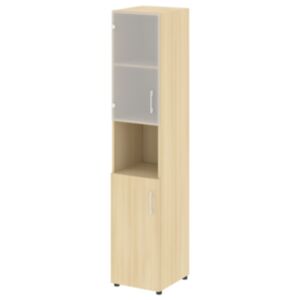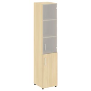 75. Шкаф высокий узкий левый (1 низкий фасад ЛДСП + 1 средний фасад стекло в раме) LT.SU-1.2 R (L) 400×450×1987