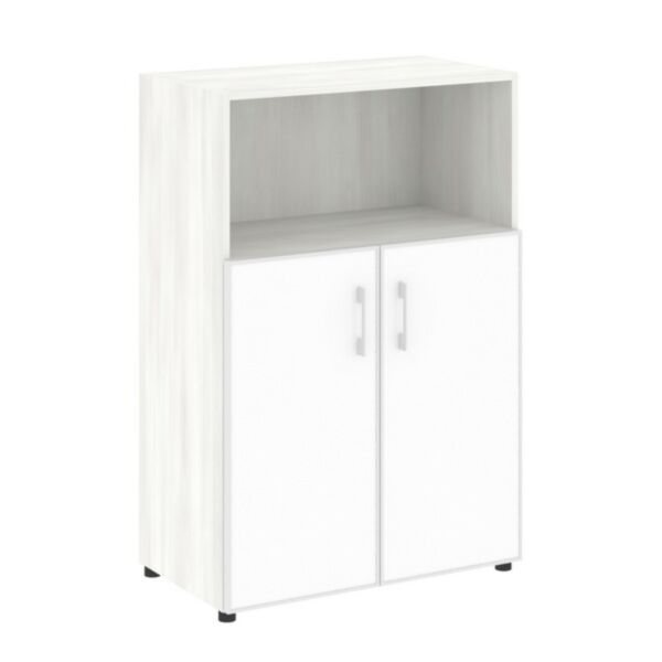 Шкаф средний широкий (2 низких фасада стекло лакобель. белое в раме) LT.ST-2.2 R white 800×450×1195