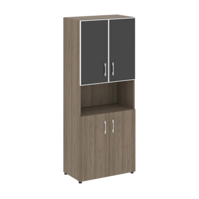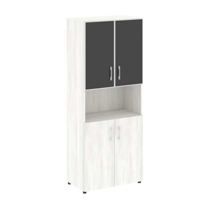 Шкаф высокий широкий (2 низких фасада ЛДСП + 2 низких фасада стекло лакобель. белое в раме) LT.ST-1.4 R black 800×450×1987
