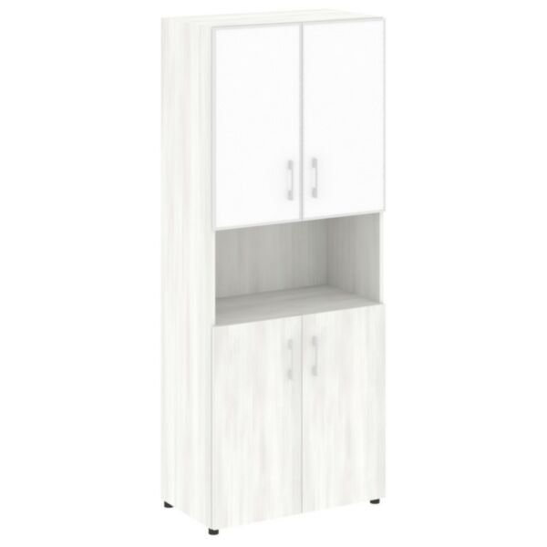 Шкаф высокий широкий (2 низких фасада ЛДСП + 2 низких фасада стекло лакобель. белое в раме) LT.ST-1.4 R white 800×450×1987