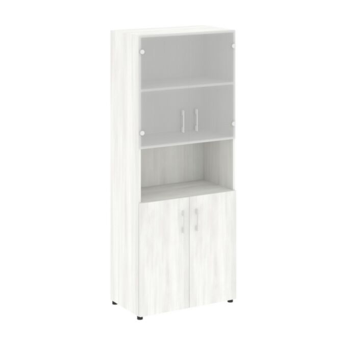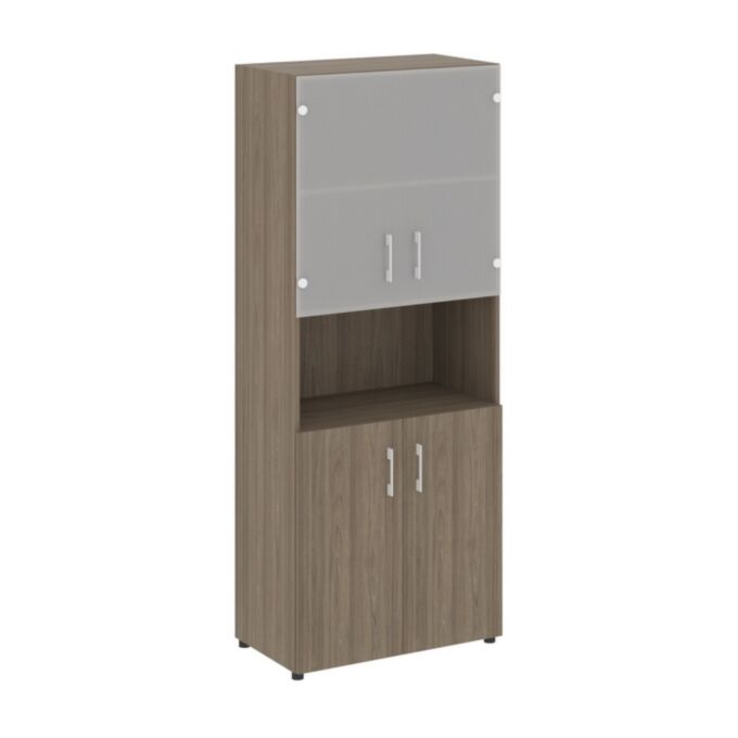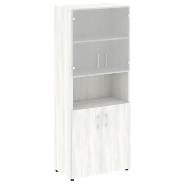 Шкаф высокий широкий (2 низких фасада ЛДСП + 2 низких фасада стекло) LT.ST-1.4 800×450×1987