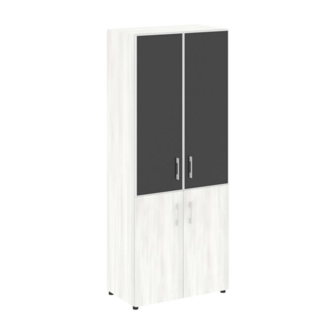 Шкаф высокий широкий (2 низких фасада ЛДСП + 2 средних фасада стекло лакобель. черное в раме) LT.ST-1.2 R black 800×450×1987
