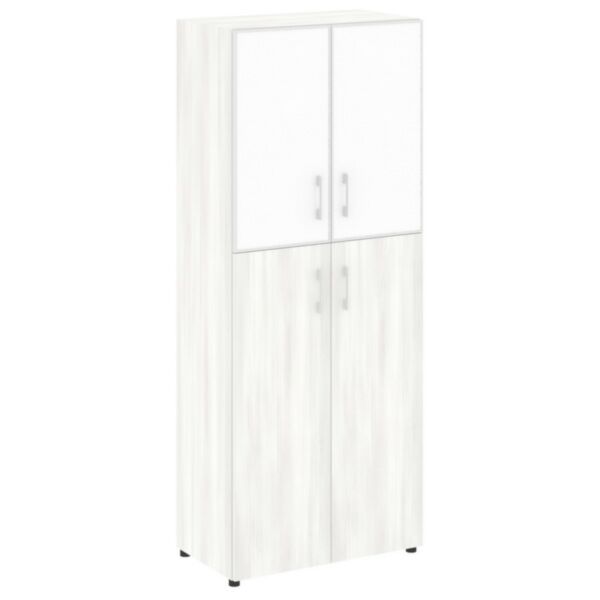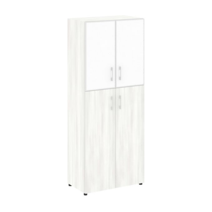 Шкаф высокий широкий (2 средних фасада ЛДСП + 2 низких фасада стекло лакобель. белое в раме) LT.ST-1.7 R white 800×450×1987