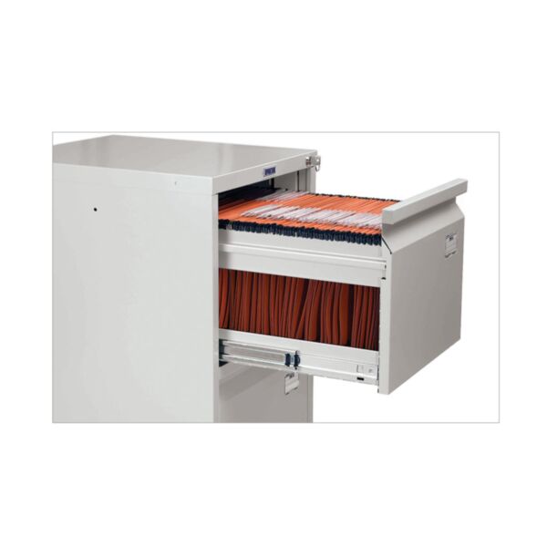 Ящики рассчитаны на хранение подвесных файлов формата A4 и папок типа КОРОНА, также в них можно размещать канцелярские принадлежности и личные вещи. Встроенная защита от опрокидывания исключает возможность одновременного открытия нескольких ящиков, что делает использование безопасным.