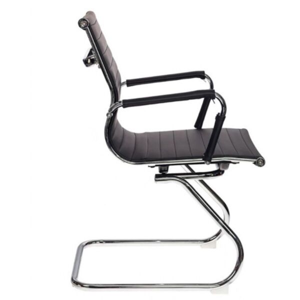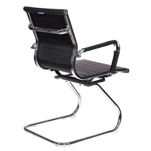 Хромированные металлические подлокотники с накладками обеспечивают комфорт и эстетичный внешний вид. Основание на хромированных металлических полозьях придает креслу современный и элегантный вид, а также гарантирует его стабильность.