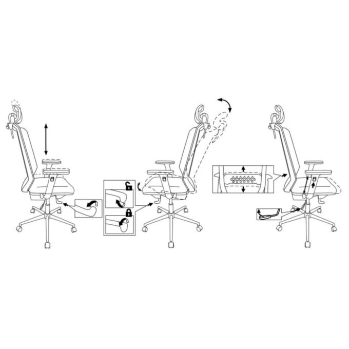 MULTI BLOCK: регулировка высоты (газлифт) механизм со смещенной осью качания фиксация в нескольких положениях |