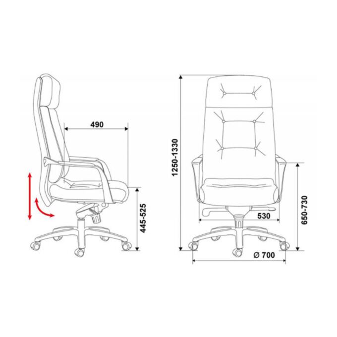 Хромированные металлические подлокотники с накладками обеспечивают дополнительный комфорт и устойчивость. Полированное алюминиевое пятилучье основание не только красиво выглядит, но и гарантирует надёжность и долговечность. Механизм MULTI BLOCK включает регулировку высоты с помощью газлифта, механизм качания со смещенной осью и возможность фиксации в нескольких положениях, что позволяет настроить кресло под индивидуальные предпочтения пользователя.