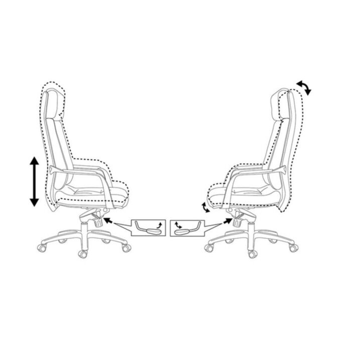Хромированные металлические подлокотники с накладками создают комфортные условия для работы, а алюминиевое полированное пятилучье основание гарантирует устойчивость и надежность конструкции. Механизм MULTI BLOCK включает регулировку высоты с помощью газлифта, механизм со смещенной осью качания и возможность фиксации в нескольких положениях, что позволяет настроить кресло под индивидуальные потребности.