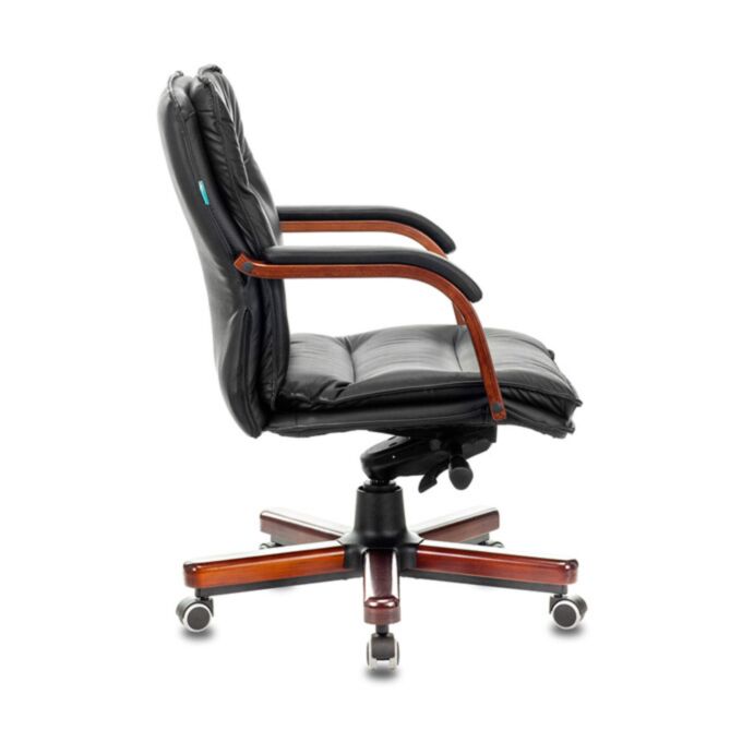 Черный цвет кожи и экокожи создает элегантный и современный внешний вид, который идеально дополнит любой интерьер офиса. Деревянные подлокотники с накладками добавляют креслу изысканности и придают ему особый шарм.