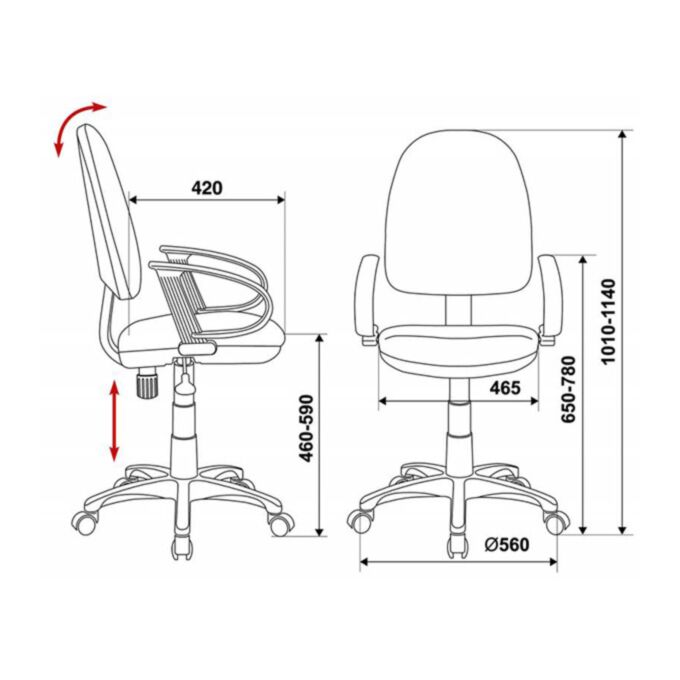 PIASTRA: регулировка высоты (газлифт) без механизма качания + Пружинно-винтовой механизм качания спинки |