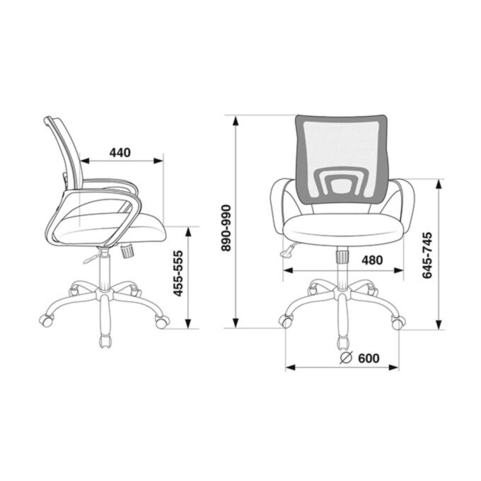 Пластиковые подлокотники добавляют удобства, обеспечивая поддержку рук во время работы. Хромированное металлическое пятилучье основания придает креслу элегантный внешний вид и обеспечивает его прочность и устойчивость.
