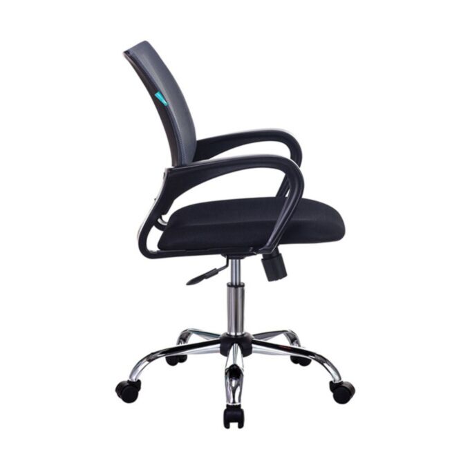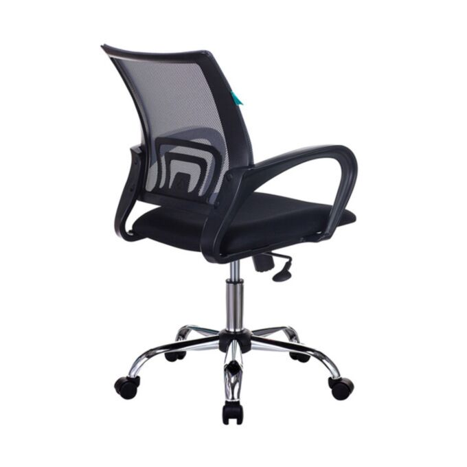 Пластиковые подлокотники добавляют дополнительный комфорт и поддержку для рук, что важно для продуктивной работы. Хромированное металлическое пятилучье основания не только придает креслу современный и элегантный вид, но и гарантирует его прочность и устойчивость.