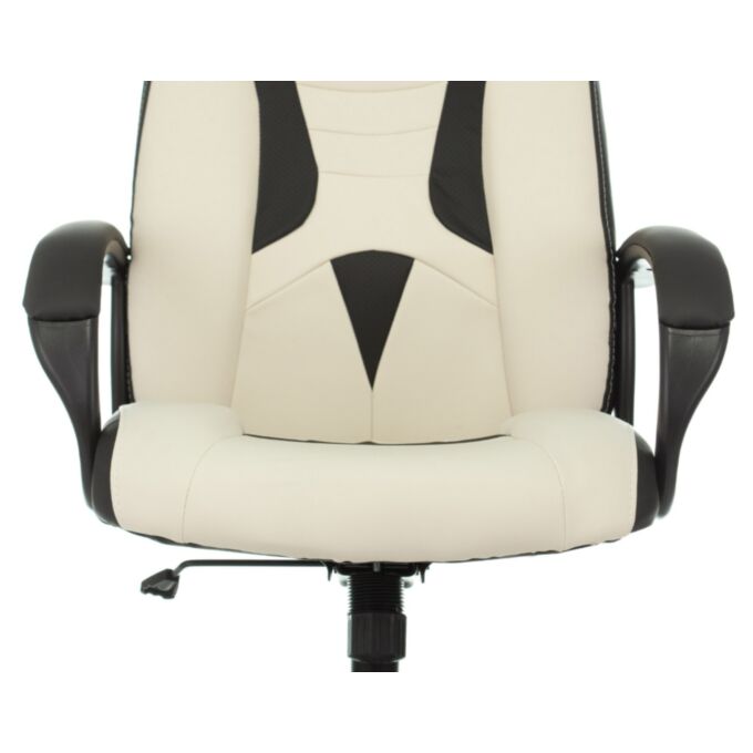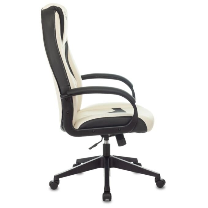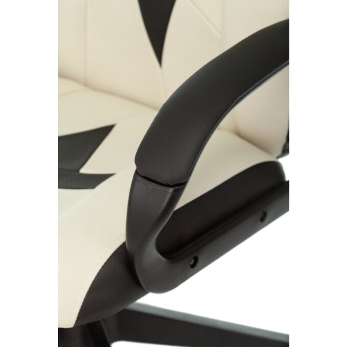 Обивка из экокожи белого цвета придает креслу современный и элегантный внешний вид, легко сочетающийся с различными интерьерами. Пластиковые подлокотники с мягкими накладками обеспечивают удобство и поддержку рук во время длительных игровых сессий.