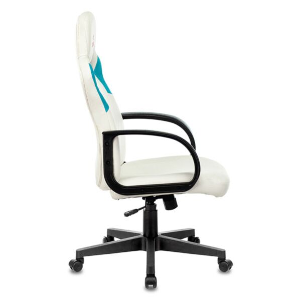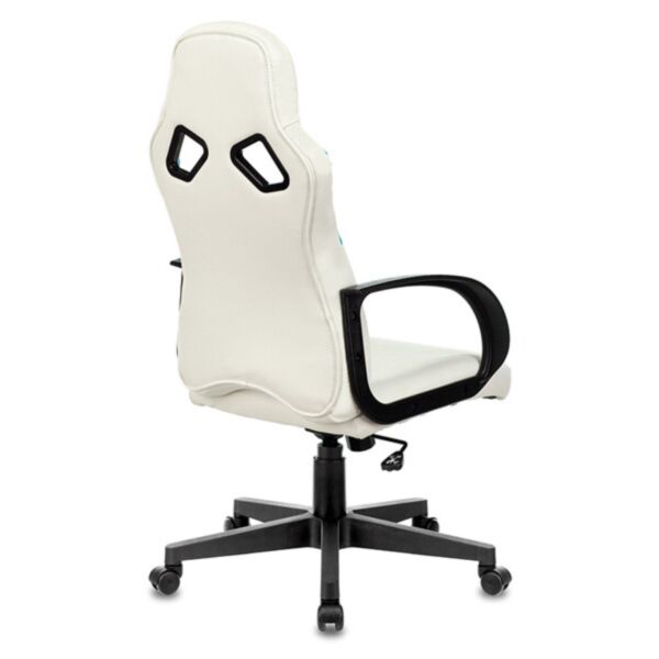 Кресло обито экокожей белого цвета, придающей ему современный и элегантный вид. Пластиковые подлокотники обеспечивают поддержку для рук, уменьшая нагрузку во время длительного использования.