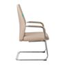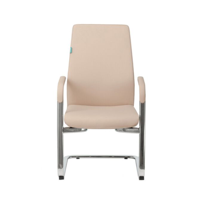 Хромированные металлические подлокотники с накладками и прочное хромированное металлическое основание на полозьях гарантируют устойчивость и износостойкость конструкции. Низкая спинка кресла обеспечивает поддержку нижней части спины, способствуя комфортной работе в течение длительного времени.