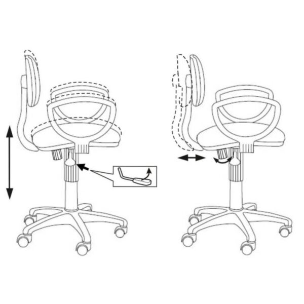 Кресло оснащено пластиковыми подлокотниками, которые обеспечивают дополнительную поддержку и удобство. Пластиковое пятилучье основания гарантирует стабильность и надежность конструкции. Механизм PIASTRA включает в себя регулировку высоты с помощью газлифта, а также возможность регулировки глубины сиденья, что позволяет настроить кресло под индивидуальные предпочтения пользователя.