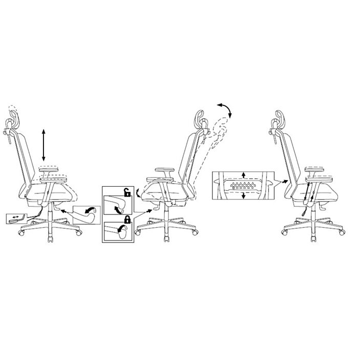 MULTI BLOCK: регулировка высоты (газлифт) механизм со смещенной осью качания фиксация в нескольких положениях |