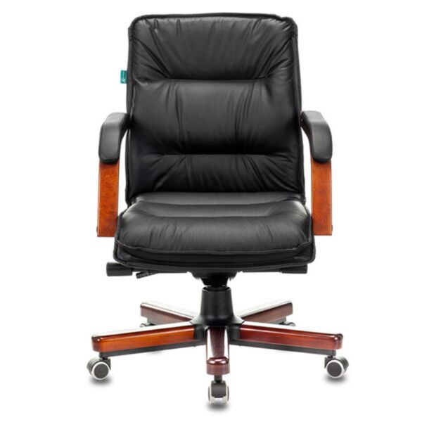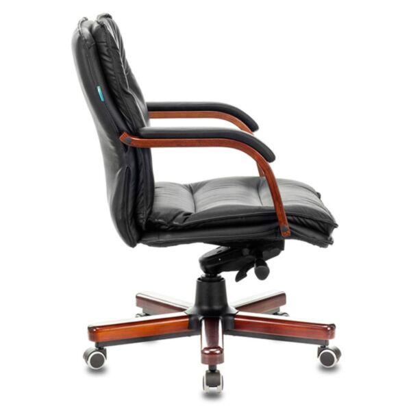 Черный цвет кожи и экокожи создает элегантный и современный внешний вид, который идеально дополнит любой интерьер офиса. Деревянные подлокотники с накладками добавляют креслу изысканности и придают ему особый шарм.