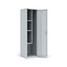 Шкаф оснащён тремя просторными полками, которые позволяют упорядоченно разместить инвентарь или другие предметы. Для одежды предусмотрены перекладина для подвешивания вешалок и несколько прочных крючков, обеспечивающих удобство и чёткость в размещении вещей. Дверца шкафа оборудована встроенным замком с надёжным врезным механизмом, который гарантирует защиту содержимого от несанкционированного доступа.
