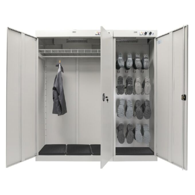 Сушильный шкаф ШС Сахара 8 создан для быстрой и эффективной сушки униформы, обуви и защитной экипировки восьми сотрудников. Он используется в сферах, где персонал регулярно сталкивается с влажными и тяжёлыми условиями: на промышленных объектах, в силовых структурах, спасательных службах и спортивных учреждениях. Модель демонстрирует высокую надёжность и рассчитана на длительную эксплуатацию при интенсивных нагрузках. Конструкция состоит из двух отдельных секций. Одна часть предназначена для одежды и оборудована прочной перекладиной и полкой для головных уборов и аксессуаров. Вторая зона спроектирована для обуви и оснащена системой патрубков с автоматическими клапанами, которые блокируют подачу воздуха при отсутствии обуви. Это решение позволяет снизить энергозатраты и повысить безопасность работы. Шкаф выдерживает значительные нагрузки: перекладина рассчитана на 50 кг, съёмная полка — до 10 кг. В комплекте поставляются четыре термостойких резиновых поддона, которые защищают основание от влаги и загрязнений. Оцинкованные элементы корпуса повышают устойчивость к коррозии. Каждая секция управляется отдельно. Поворотные регуляторы позволяют установить температуру до 70 С и задать время сушки до шести часов. Все электроэлементы находятся в верхней части корпуса, исключая контакт с влагой. Безопасность дополняется вынесенным УЗО и сертифицированным соответствием требованиям электробезопасности, санитарных норм и технического регламента. Благодаря регулируемым опорам шкаф можно точно установить даже на неровной поверхности. Компактное размещение и продуманная вентиляция обеспечивают быструю и равномерную сушку вещей. ШС Сахара 8 — это профессиональное решение для рабочих и ведомственных объектов, где важно сохранить сухость, порядок и комфорт в течение всего рабочего дня.