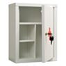 Устройство может быть установлено на стену с помощью креплений или размещено на ровной поверхности. Для повышения безопасности аптечка оснащена ключевым замком, исключающим доступ посторонних лиц.