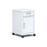 Модель оснащена четырьмя колесами диаметром 50 мм для легкого перемещения, при этом два передних колеса снабжены стопорами для надежной фиксации тумбы в нужном положении.