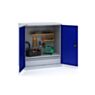 Шкаф оборудован ригельной системой запирания и замком с повышенной степенью защиты, что обеспечивает надежное хранение содержимого. Корпус покрыт полимерной порошковой краской, которая защищает от коррозии и механических повреждений. Стандартное цветовое исполнение включает светло-серый корпус (RAL 7035) и синие двери (RAL 5002), при необходимости возможна окраска в любой другой оттенок из каталога RAL.