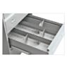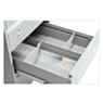 Функция защиты от опрокидывания предотвращает одновременное выдвижение более одного ящика, что повышает безопасность использования. Надёжную блокировку обеспечивает центральный замок PRAKTIK, поддерживающий до 2000 комбинаций, смену цилиндра и работу с мастер-ключом.