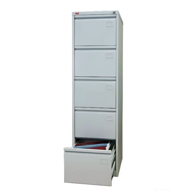 Модульная система КР-5 предназначена для удобного размещения деловой документации, архивных бумаг и других бумажных носителей. Конструкция включает пять отдельных секций, каждая из которых оснащена механизмом плавного выдвижения. Центральный замок обеспечивает блокировку всех ящиков одновременно, предотвращая несанкционированный доступ. Шкаф адаптирован под размещение документов форматов Foolscap и A4, что позволяет использовать его в офисах, архивах, делопроизводственных отделах и административных помещениях. Встроенная система стабилизации предотвращает опрокидывание конструкции при открытии нескольких секций одновременно. Телескопические направляющие обеспечивают плавный и бесшумный ход ящиков, увеличивая удобство эксплуатации. Основа изготовлена из прочного материала, устойчивого к механическим повреждениям и внешним воздействиям. Наружная поверхность обработана защитным покрытием нейтрального оттенка (RAL 7035), которое предотвращает появление ржавчины, уменьшает риск царапин и продлевает срок службы изделия. КР-5 — это эффективное и практичное решение для организации хранения документации, которое помогает поддерживать порядок и обеспечивает быстрый доступ к необходимым материалам.