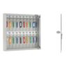 Внутри размещены металлические крючки, на которые можно развесить до 20 ключей. Благодаря прозрачной дверце можно визуально контролировать содержимое, не открывая корпус. Ключевой замок надёжно защищает доступ, исключая несанкционированное вскрытие.