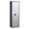 Корпус шкафа изготовлен из качественной стали и выполнен в виде цельносварной конструкции, что повышает прочность и устойчивость ко внешним механическим воздействиям. Толщина лицевой панели и боковых стенок составляет 1,2 мм, что обеспечивает необходимую защиту от деформаций и взлома.