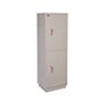 Корпус изготовлен из стального листа толщиной 1,5 мм, а двери усилены внутренними металлическими панелями коробчатого типа толщиной 0,8 мм. Такое конструктивное решение делает изделие более прочным и устойчивым к механическим воздействиям. В качестве системы запирания используется врезной 8-сувальдный замок марки «Бордер» российского производства, который обеспечивает высокий уровень безопасности. В комплекте к каждому замку прилагается два ключа.