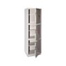 Шкаф имеет три автономных отсека, отделенных друг от друга перегородками и оснащенных индивидуальными дверцами. В каждом отделении установлена одна регулируемая съемная полка, что позволяет организовать пространство с учетом специфики хранения.