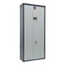 Конструкция выполнена из прочного металла с толщиной стенок и двери до 2 мм, что обеспечивает начальный уровень защиты от попыток несанкционированного доступа. Внутреннее пространство организовано с учётом практического удобства: установлены ложементы, фиксирующие оружие в вертикальном положении, полки для аксессуаров и отдельное патронное отделение с индивидуальным ключевым замком. Для бережного хранения на дно уложен коврик, предотвращающий появление царапин и других повреждений на поверхности оружия.