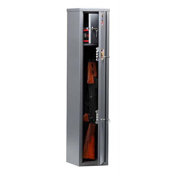 Оружейный сейф Чирок 1025 представляет собой надёжное и практичное решение для организованного хранения огнестрельного оружия и боеприпасов как в бытовых условиях, так и в учреждениях с ограниченным доступом. Сейф спроектирован в полном соответствии с нормами, установленными Постановлением Правительства РФ No814 от 21 июля 1998 года, регламентирующим условия хранения гражданского и служебного оружия, а также боеприпасов. Модель спроектирована с учётом всех норм безопасности и обеспечивает должный уровень защиты от несанкционированного доступа, предотвращая возможные риски, связанные с небрежным хранением оружия. Главной особенностью модели является усовершенствованное патронное отделение, которое не ограничивает внутреннее пространство и позволяет размещать оружие на полную высоту корпуса. Это делает сейф удобным решением для хранения длинноствольных образцов. При установленной полке вмещаются стволы длиной до 970 мм, а при её демонтаже освобождается ещё больше полезного пространства. Два ключевых замка обеспечивают надёжную защиту от несанкционированного доступа, а предусмотренные анкерные отверстия позволяют надёжно закрепить сейф к стене для дополнительной устойчивости. Чирок 1025 сочетает в себе прочную металлическую конструкцию, функциональность и соответствие установленным требованиям к безопасному хранению оружия в жилых и служебных помещениях.