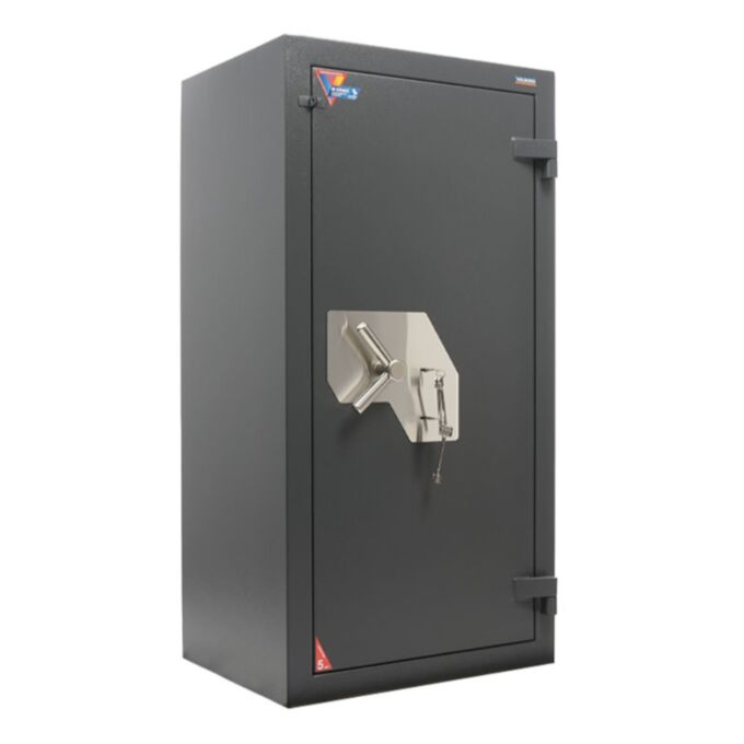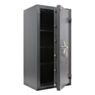 Система запирания построена на трёхсторонней схеме с усиленными ригелями. Замковый узел и ригели защищены от разрушения и сверления, а при попытке взлома активируется механизм автоматической блокировки. Модель оснащена надёжным замком ключевого типа производства KABA MAUER (Германия), что гарантирует высокий уровень защиты от несанкционированного доступа. В комплект включены три оригинальных ключа. Сейф предусматривает возможность опечатывания, а также имеет техническое отверстие на задней панели — для интеграции с сигнализацией. Анкерное крепление позволяет зафиксировать изделие к полу, соответствующий крепёж входит в базовую поставку.