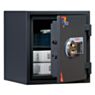 Сейф оснащён электронным кодовым замком PS 310/E01 от компании ПРОМЕТ. Он позволяет задать индивидуальный цифровой код и легко изменить его при необходимости. Это удобно для ежедневной эксплуатации и исключает использование физических ключей.