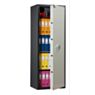 Корпус выполнен из прочной стали: толщина боковых стенок достигает 25 мм, а дверь усилена до 72 мм, включая внешнюю панель толщиной 5 мм. Такая конфигурация повышает устойчивость к попыткам взлома. Внутри встроена трёхсторонняя ригельная система, фиксирующая дверь по нескольким направлениям. Механизм защищён от сверления и механического взлома.