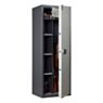 Корпус сейфа выполнен из стали толщиной 3 мм, а лицевая панель усилена стальным листом толщиной 5 мм. Это делает изделие устойчивым к механическим воздействиям и попыткам взлома. В качестве замкового механизма используется надёжный ключевой замок KABA MAUER. Для устойчивой установки предусмотрено анкерное отверстие в основании, позволяющее зафиксировать сейф к полу. Модель Сапсан-4 — это практичное и прочное решение, соответствующее всем современным стандартам хранения оружия.