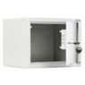 Лицевая панель сейфа изготовлена из стали толщиной 2,8 мм, что увеличивает его стойкость к механическим воздействиям и снижает вероятность вскрытия при попытке взлома. Корпус отличается жёсткостью и прочностью, сохраняя эксплуатационные характеристики в течение всего срока службы.