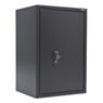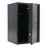 Корпус изделия выполнен из стали, устойчива к повреждениям и износу. Толщина боковых стенок составляет 1,5 мм, а дверь усилена до 59 мм, что значительно затрудняет попытки взлома. Внутри скрыт запирающий механизм с поворотными ригелями, надёжно блокирующими дверцу в закрытом положении. Такие элементы делают невозможным открытие двери путём отжима или физического воздействия.