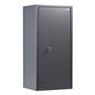 Корпус сейфа выполнен из качественной стали с толщиной боковых стенок 1,5 мм. Дверь усилена до 59 мм, что создаёт дополнительный барьер от физических воздействий. Система запирания оснащена вращающимися ригелями, которые при закрытии надёжно фиксируют дверцу и препятствуют её отжиму. Устойчивость к высверливанию обеспечивается специальными защитными элементами в области замка.