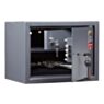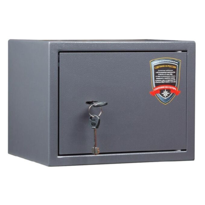 Передняя панель выполнена из стали толщиной 2,8 мм, что позволяет повысить надёжность зоны замка. Боковые элементы корпуса изготовлены из металлического листа толщиной 1,2 мм — такое решение делает конструкцию прочной и при этом не перегружает её весом. Компактные размеры позволяют установить сейф в ограниченном пространстве: в шкафу, кладовке или небольшой нише.