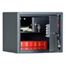 Лицевая часть корпуса выполнена из стального листа толщиной 2,8 мм, что обеспечивает повышенную прочность в критической области замка и значительно затрудняет попытки механического взлома. Такое усиление играет ключевую роль в защите содержимого сейфа от несанкционированного доступа. Боковые панели толщиной 1,2 мм обеспечивают достаточную жёсткость корпуса при его малом весе, позволяя разместить сейф даже в условиях ограниченного пространства, например в шкафу или кладовой.
