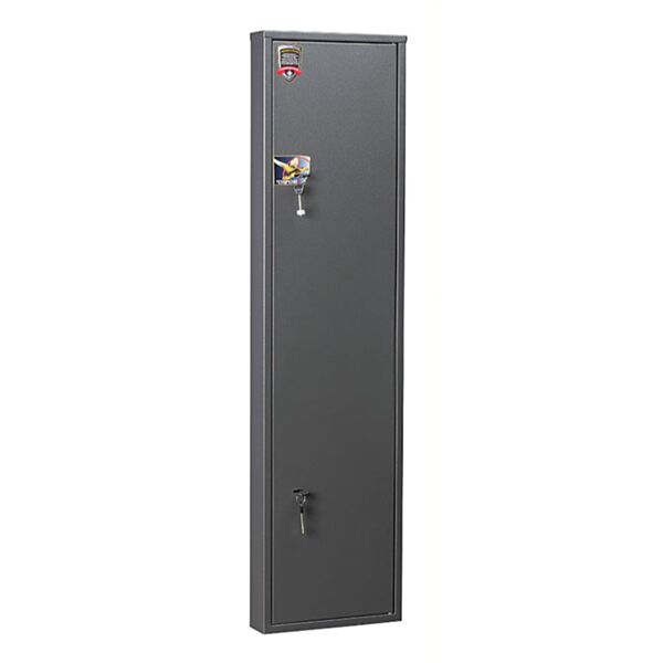 Внутреннее пространство рассчитано на размещение длинноствольного оружия с максимальной высотой ствола до 1370 мм. Это позволяет хранить большинство охотничьих и служебных ружей без необходимости разборки. Корпус выполнен из прочной стали и снабжён двумя надёжными ключевыми замками, обеспечивающими базовую защиту от несанкционированного доступа.