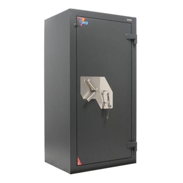 Система запирания построена на трёхсторонней схеме с усиленными ригелями. Замковый узел и ригели защищены от разрушения и сверления, а при попытке взлома активируется механизм автоматической блокировки. Модель оснащена надёжным замком ключевого типа производства KABA MAUER (Германия), что гарантирует высокий уровень защиты от несанкционированного доступа. В комплект включены три оригинальных ключа. Сейф предусматривает возможность опечатывания, а также имеет техническое отверстие на задней панели — для интеграции с сигнализацией. Анкерное крепление позволяет зафиксировать изделие к полу, соответствующий крепёж входит в базовую поставку.