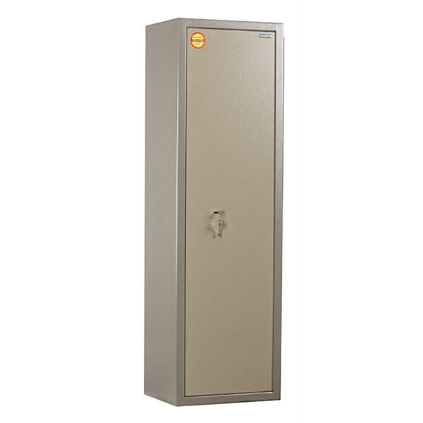 Модель позволяет размещать длинноствольное оружие с максимальной длиной ствола до 1435 мм. Корпус изготовлен из стали толщиной 3 мм, а лицевая панель усилена до 10 мм, что существенно повышает устойчивость конструкции к внешнему воздействию. За фиксацию двери отвечает трёхсторонняя ригельная система, обеспечивающая надёжную блокировку сразу по нескольким направлениям, предотвращая несанкционированный доступ.